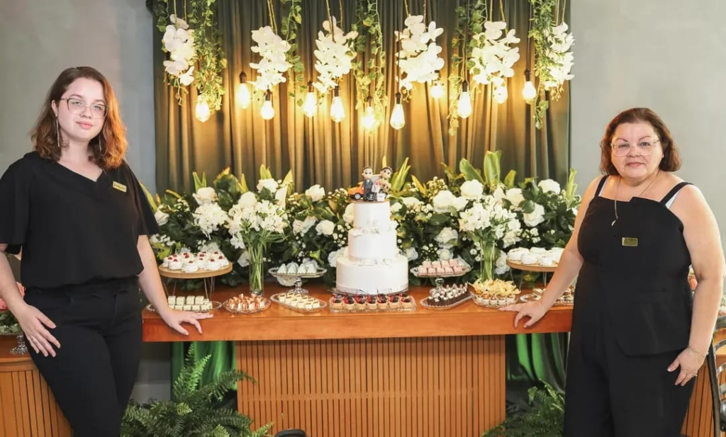 Durante o atendimento, Valdinéia também apresenta o funcionamento dos serviços, incluindo detalhes como a montagem da mesa de bolo, oferecida como cortesia. Dependendo da localização do evento, a taxa de deslocamento também pode ser isenta.