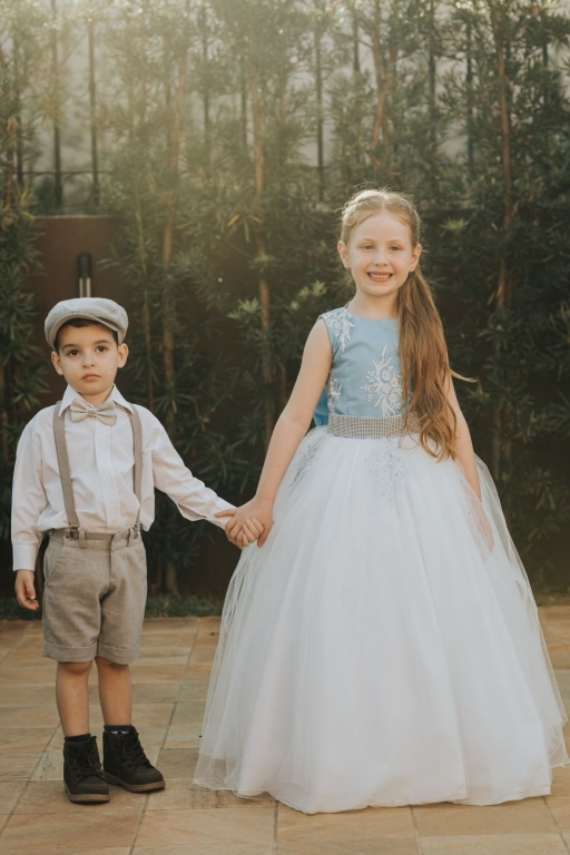Para os pajens, há desde modelos tradicionais de ternos e smokings até opções no estilo vintage, que combinam elegância e descontração, com suspensórios e bermudas.