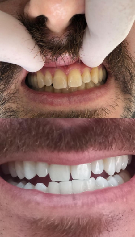 Os resultados do clareamento dental são impressionantes, especialmente ao se observar a diferença da tonalidade dos dentes antes e depois do tratamento. Como primeiro é realizado o clareamento dos dentes superiores, o paciente já pode acompanhar a transformação ao compará-lo com os inferiores, antes da conclusão. Com uma abordagem completa, o clareamento é precedido por uma limpeza dental, seguida de orientações sobre técnicas de escovação e uso do fio dental.