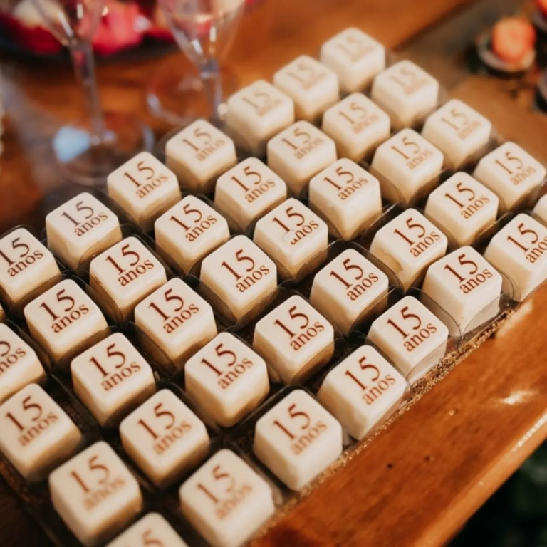 Nessas celebrações, também fazem sucesso os doces finos em formato de minibolos, decorados com flores, como uma espécie de bombom. Outra atração são as caixetas, doces personalizados em formato quadrado, com a inscrição do nome ou do número 15, agregando identidade e charme à decoração.